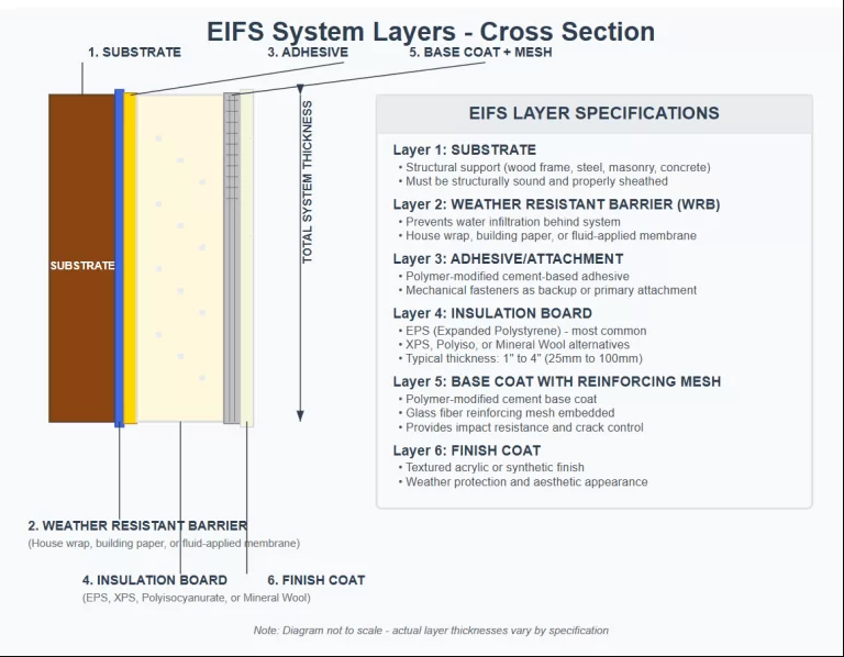 EIFS is far more than an exterior finish — it’s an integrated, multi-layered system. Each of its six components, from the structural base to the reinforced finish coat, works in harmony to enhance energy efficiency, defend against moisture intrusion, and deliver enduring beauty with exceptional, professional-grade durability.